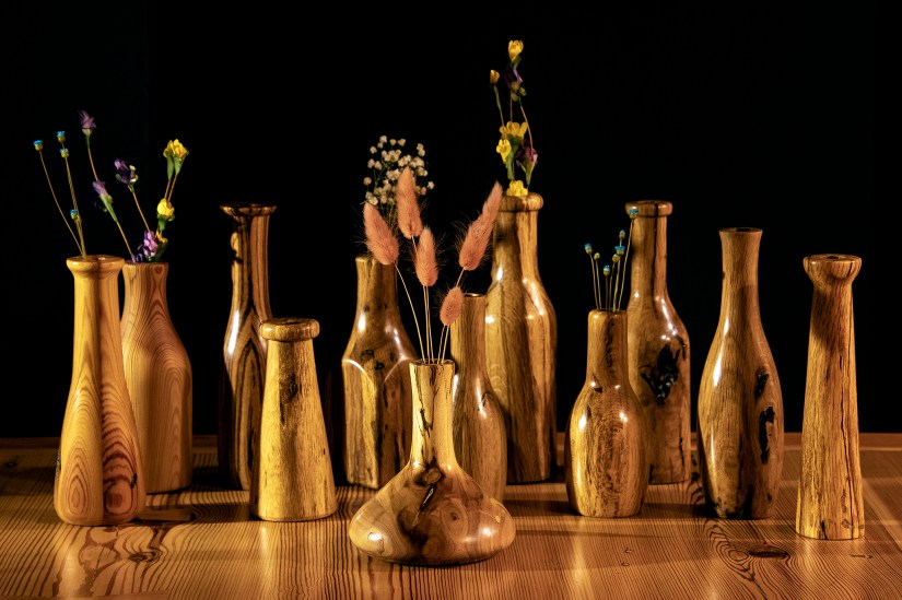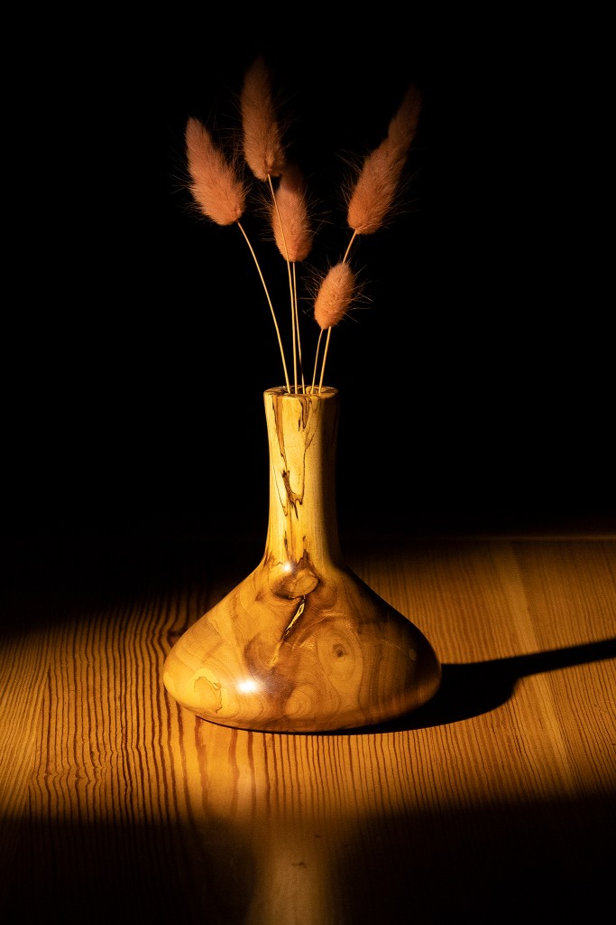 When I stand in front of the lathe I start envisioning the final thing I want to create. BUT, while I start turning, the vision changes…based on how the wood looks after a few skins off…maybe a mistake with the tool, or just an idea that pops up…so I do not follow a design, I just let my imagination flow and the results come out.